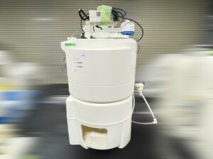 大量の液体試料(細胞懸濁液や培養液など)を高速回転(数千〜数万rpm)させ、発生する強い遠心力で固液分離を行う実験・産業用装置です。
